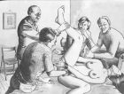 Also has sadistic features, breast binding, tit torture (hard) piercing of women. BDSM